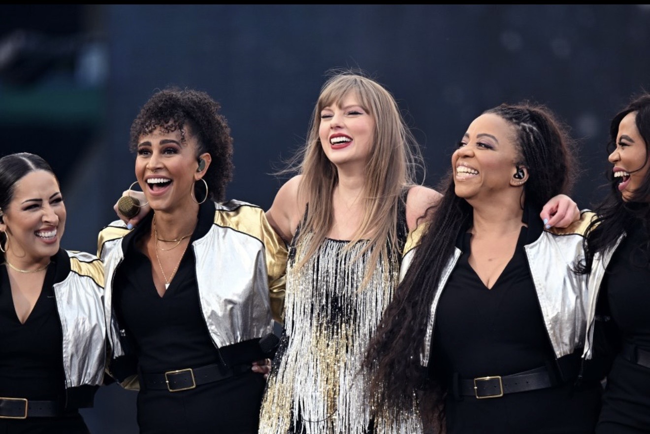 Taylor Swift with her Eras Tour troupe – Symbol of collaborative success and shared limelight.